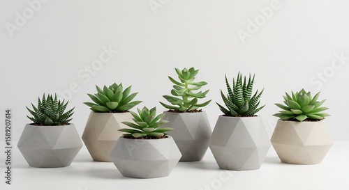 幾何学模様 多肉植物 穏やか光彩 灰色コンクリート鉢. AI Generated