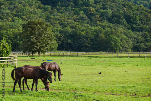 北海道 サラブレッド 放牧 Grazing horse, Hokkaido, Japan