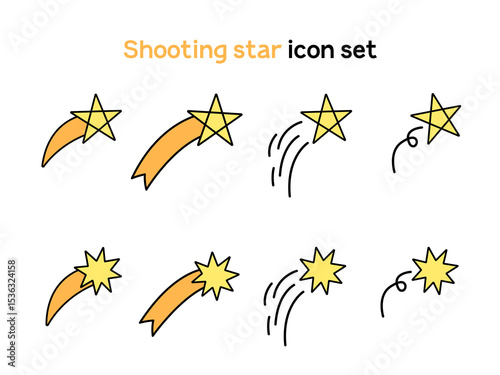 별똥별 라인드로잉 아이콘 세트(shooting star line drawing icon set)