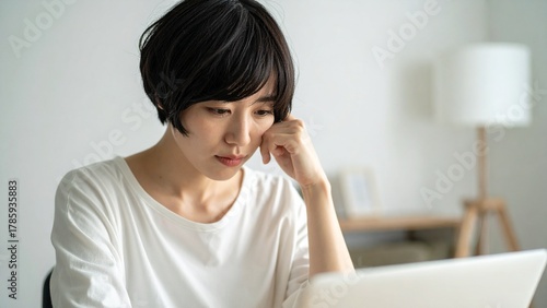 ネットビジネスに失敗 絶望している若い日本人女性 16:9サイズ