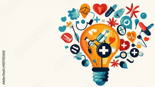 A heart-shaped bulb on white with various objects inside it
