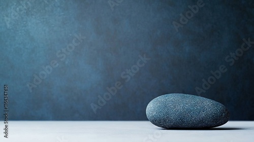 A stone atop a white counter with adjacent blue and black walls