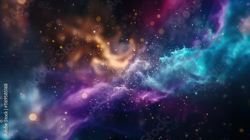 An image of a stunning space scene featuring twinkling stars against a backdrop of vibrant blue and purple clouds