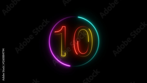 A circular illustration, and glowing neon 10 number illustration . on a black background.and creating a illustration stunning .