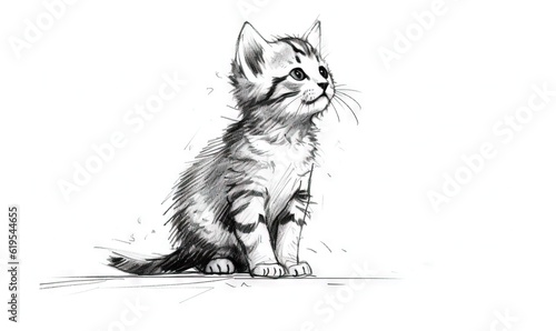a black and white drawing of a kitten sitting on the ground. generative ai