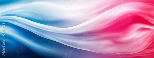A blue, pink, and white background with wavy lines forming a wave shape on its left side