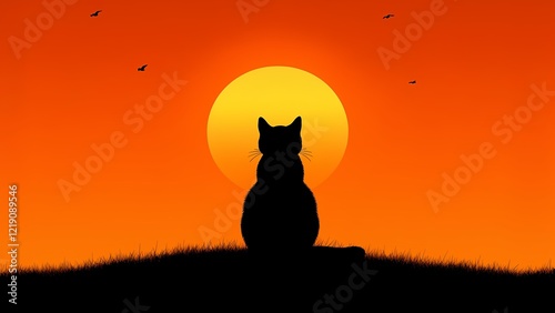 A captivating image of a cat silhouette against a vibrant orange sunset. The image evokes a sense of warmth and peace.