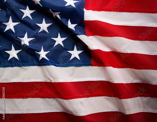 A close up of the US flag waving in the wind for Memorial Day or 4th of July