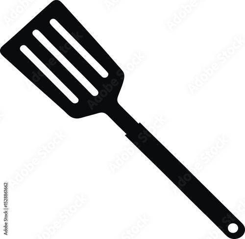 A minimalist black silhouette icon of a kitchen spatula. The spatula should have a long handle.