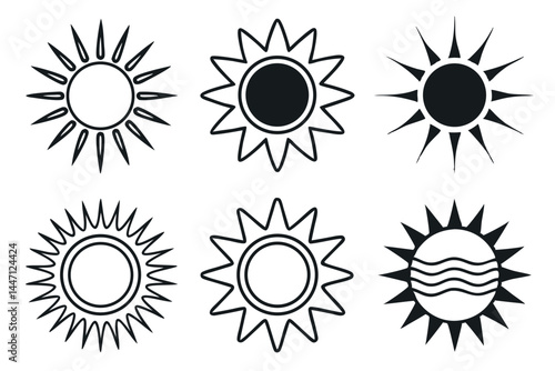 A set of sun icon vector art illustration.