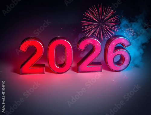 Brightly colored number 2026 reflecting the new year on white background. Artwork created with generative ai.Happy new year 2026