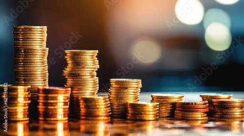 Business Finance and Investment with Financial Graphs, Coin Stacks, and Economic Growth