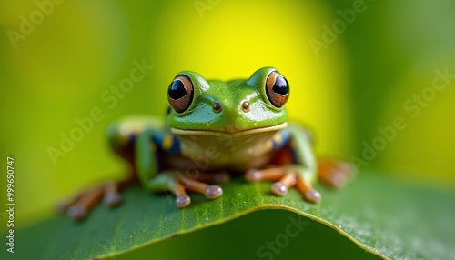 Captivating gaze of a vibrant frog in natures embrace