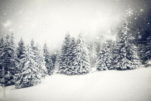 Christmas background with snowy fir trees