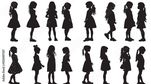 Collection of children silhouettes girls set, vector illustration