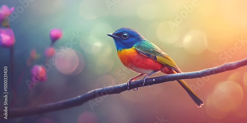 Colorful Bird on Branch with Magical Lighting