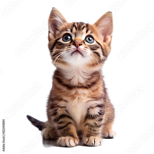 Cute playful funny kitten looking up isolated on a white background. AI GENERATED