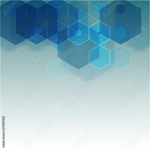 Geometric design of blue hexagons, abstract background. Brochure Template