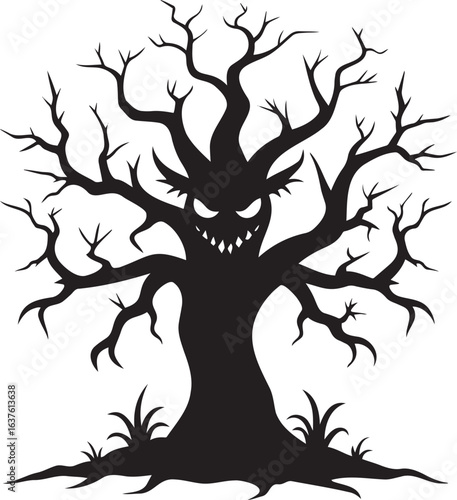 Halloween tree silhouette vector icon, Spooky trees silhouette, Halloween tree vector illustration.