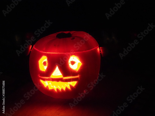 illuminated carved halloween pumpkin face