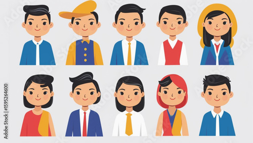 Indonesian People Cartoon Avatars, Multicultural Character Set