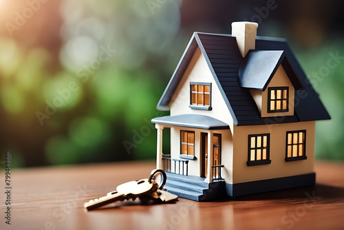 Miniature house and key. The concept for a mortgage, renting or buying a house, real estate, investment, property concept wholesale.
