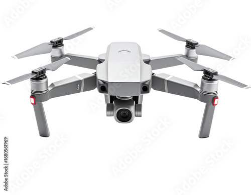 Quadcopter Drone with Camera, Front View, Isolated on White Background