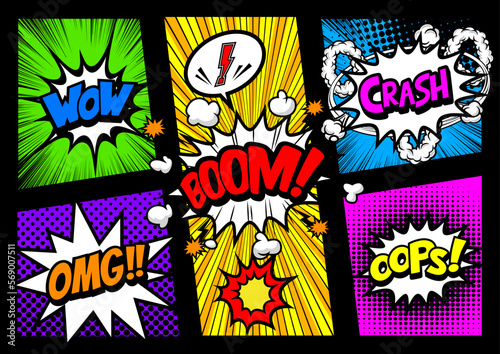 アメコミ風コマ割り素材 Retro pop art comics book magazine, speech bubble, balloon, box message