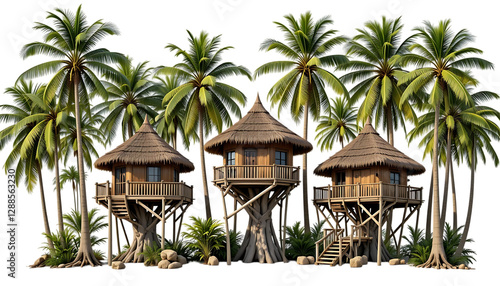 Rustic treehouses surrounded by tropical palm trees retreat.png