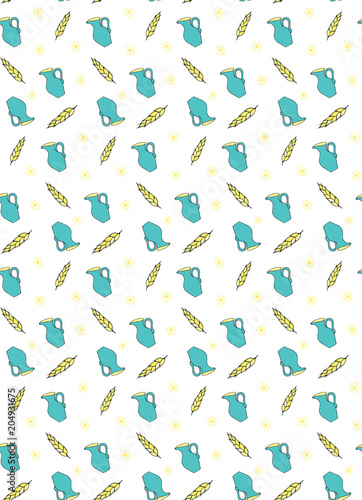 Seamless pattern grain and ears of wheat and a jug of milk.