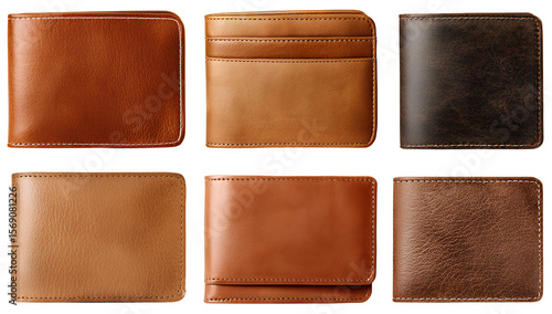 Set of leather wallet isolated on a transparent background