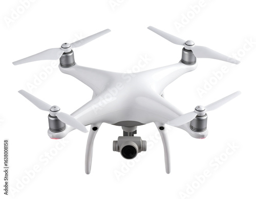 Sleek Modern Drone Overhead View, Propellers Visible, Isolated on Transparent Background