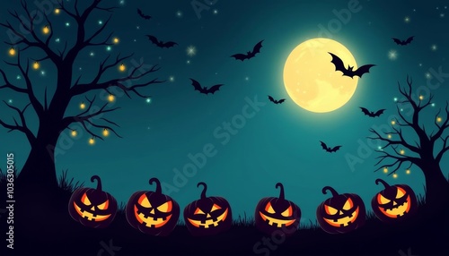 Spooky Halloween night under the full moon