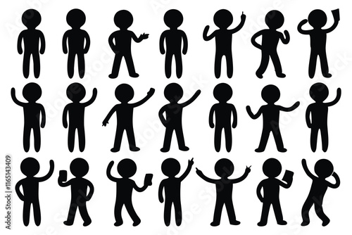 Stick figure man icon, silhouettes set isolated flat vector illustration on white background.