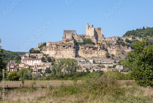 The medieval Chateau de Beynac rising on a limestone cliff above the Dordogne River. France, Dordogne department, Beynac-et-Cazenac