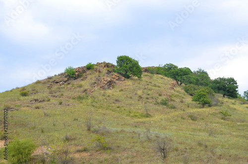 The natural landscape of the Donetsk Ridge on a summer day in cloudy weather.