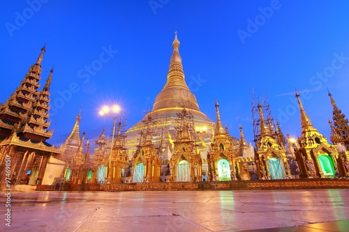 The Shwedagon Pagoda also known as the Great Dagon Pagoda and the Golden Pagoda, is a gilded stupa located in Yangon, Myanmar in twilight time