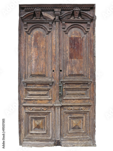 Vintage old brown wood door with patterns isolated