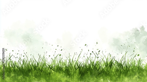Watercolor grassy field background with white space for text and design, fresh nature theme for spring projects