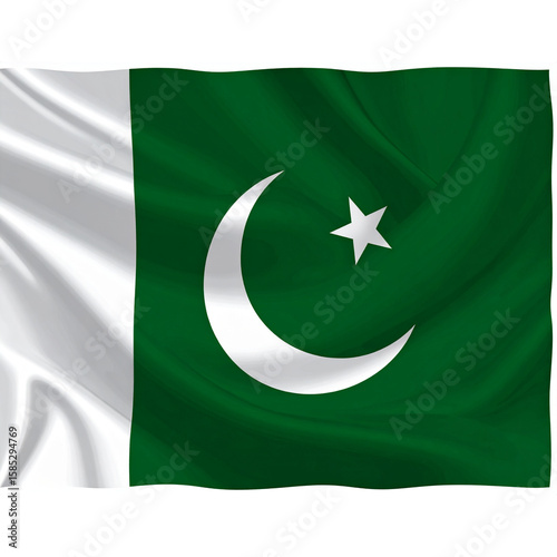 Waving Pakistani flag with realistic fabric folds, isolated on transparent background PNG
