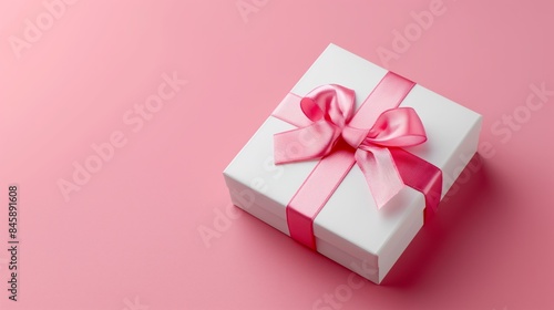 White Gift Box with Satin Ribbon on a pink Background
