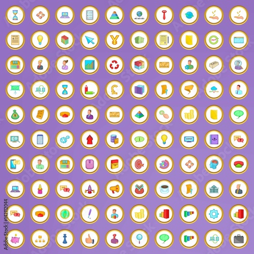 100 business planning icons set in cartoon style
