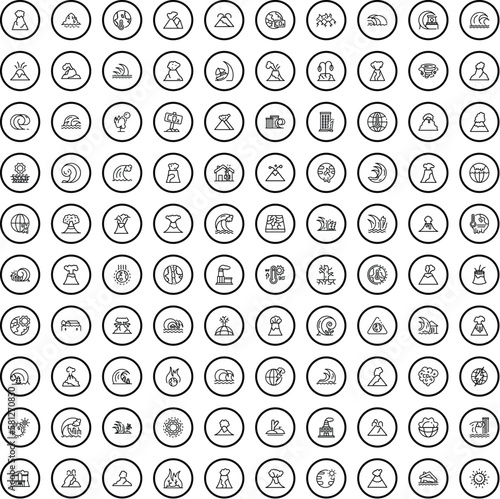 100 earth icons set. Outline illustration of 100 earth icons vector set isolated on white background