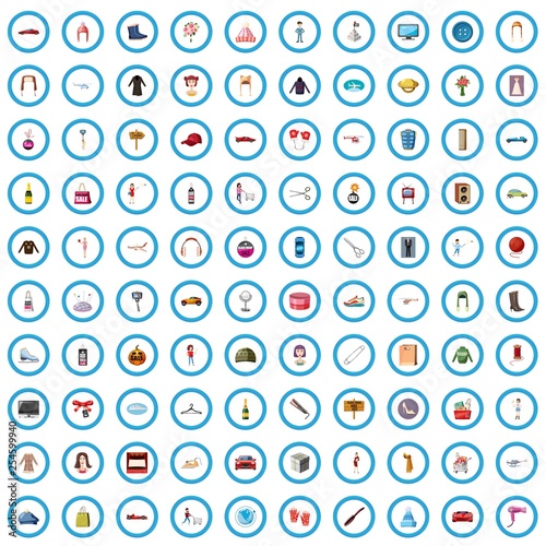 100 fashion icons set in cartoon style for any design vector illustration