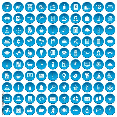 100 hotel services icons set in blue circle isolated on white vectr illustration