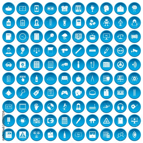 100 information icons set in blue circle isolated on white vector illustration