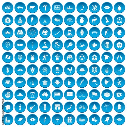 100 map icons set in blue circle isolated on white vector illustration