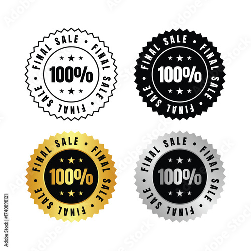 100 percent collection of four final sale badges in various colors and styles on a white background