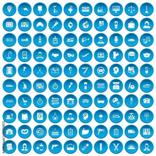 100 work icons set in blue circle isolated on white vector illustration