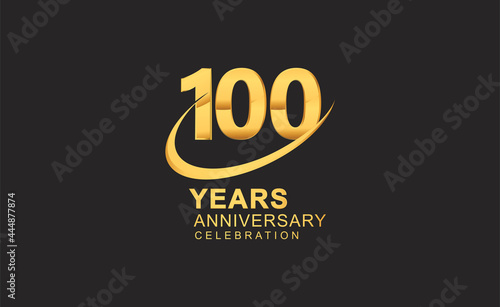 100th years anniversary with swoosh design golden color isolated on black background for celebration